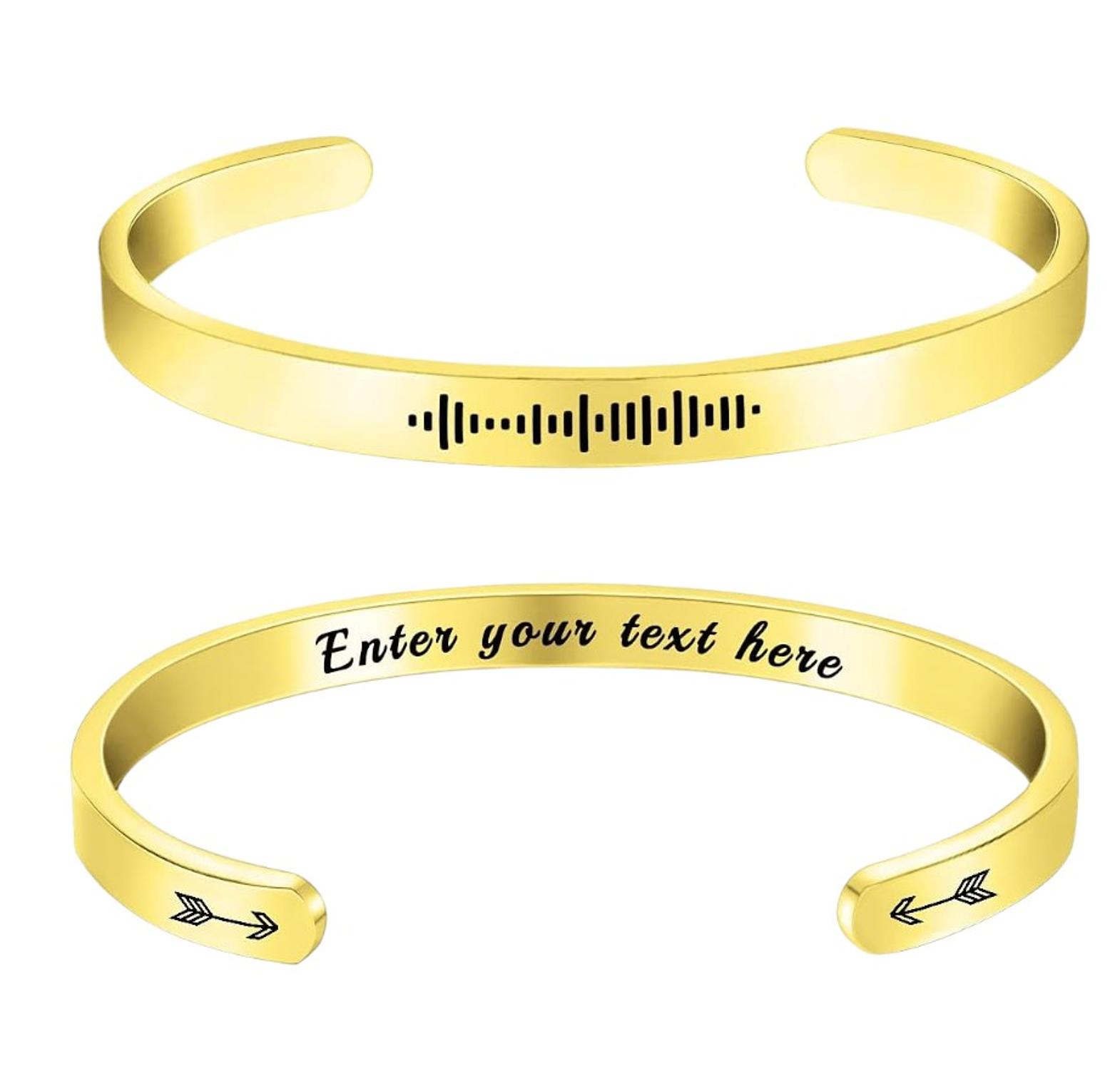 This Spotify Bracelet is made from high quality brass, it is a perfect gift for mom, sister, best friend, bridesmaid or yourself! Let us know below the song or playlist you would like and we will generate the code for you. Engraving is on both sides please indicate which message goes inside or outside. Note: Delivery for orders placed is after two days