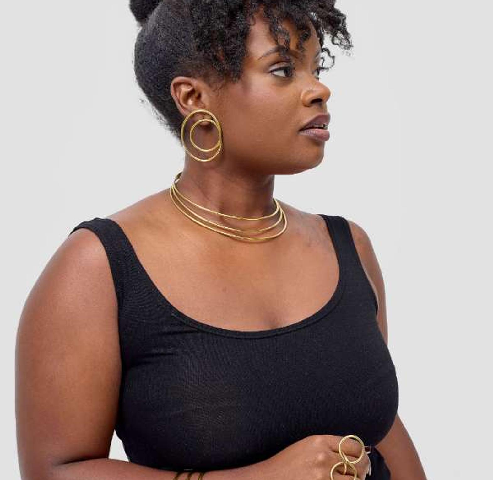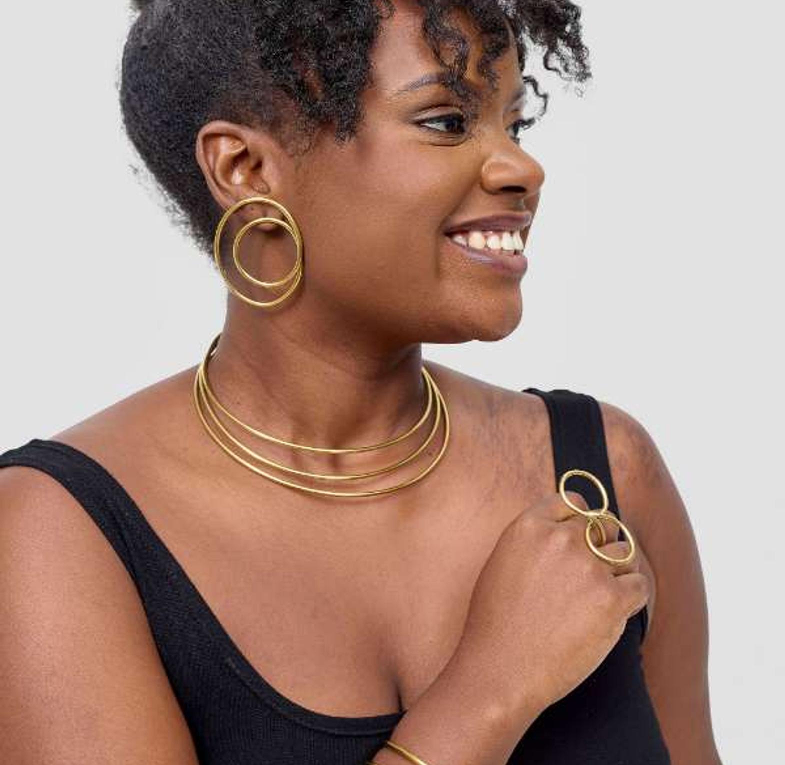 Enhance your elegance with a stylish brass jewelry set featuring coordinated necklaces, bracelets, rings, and earrings that effortlessly elevate any outfit.