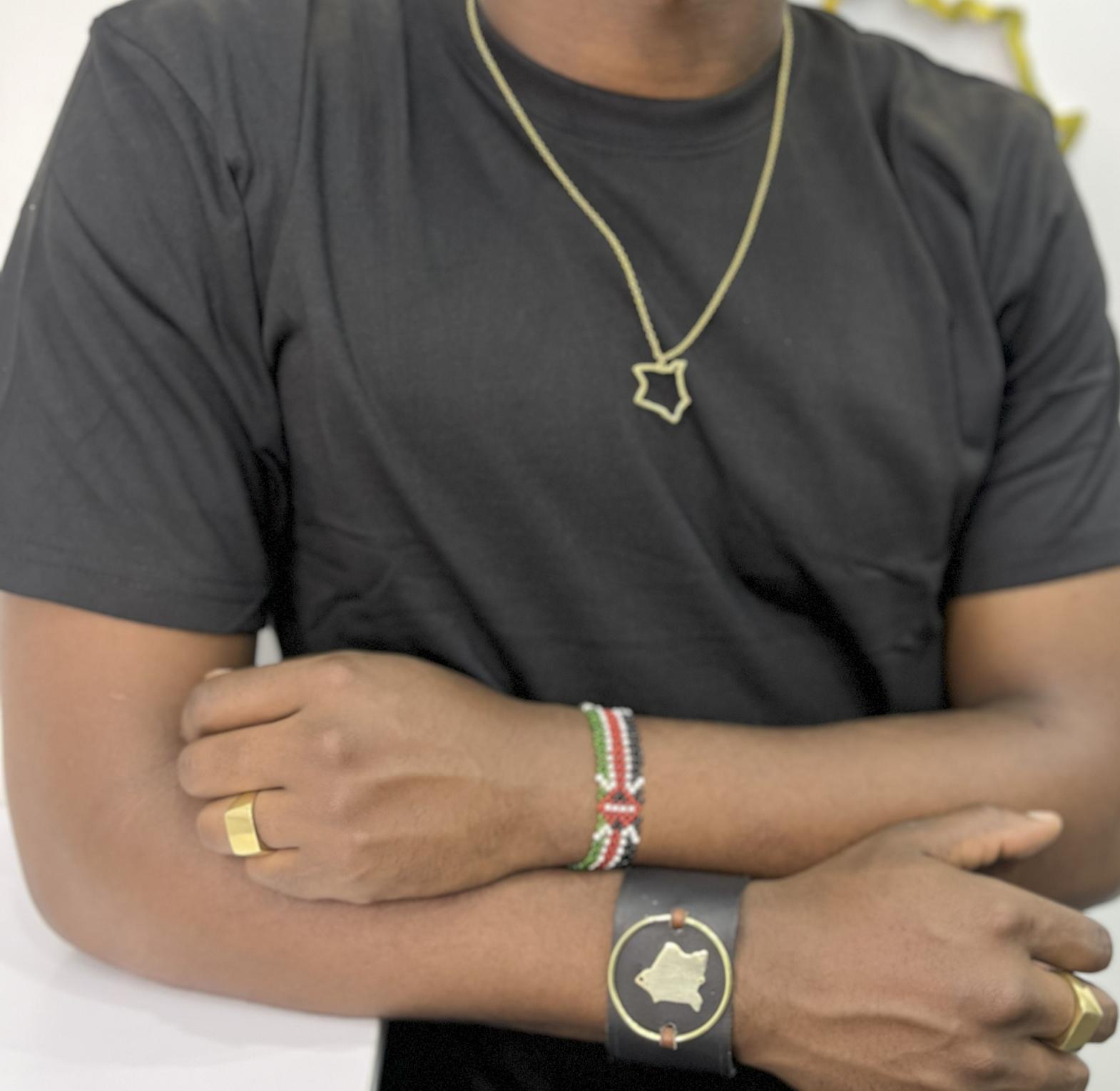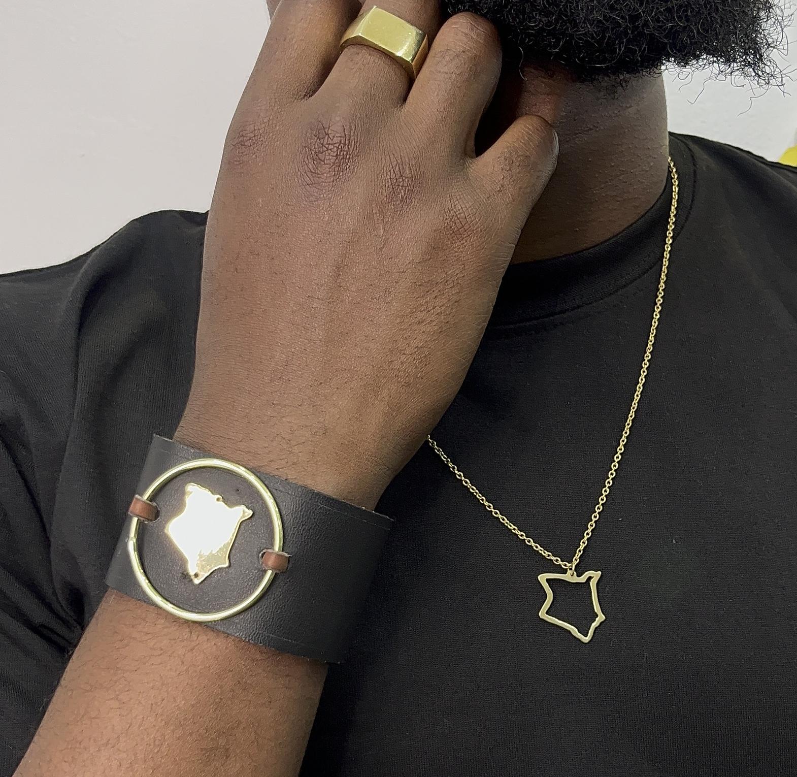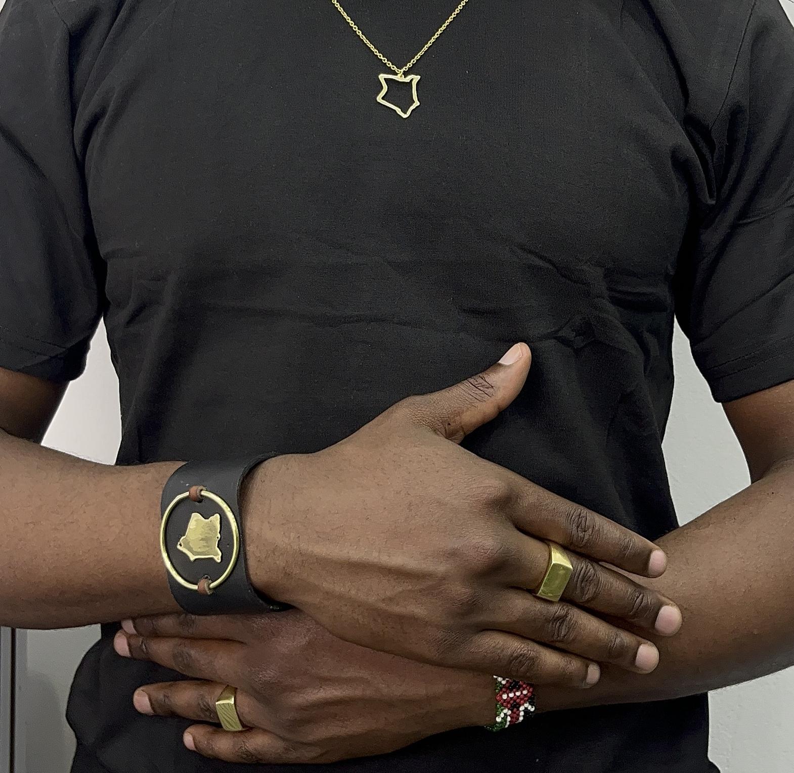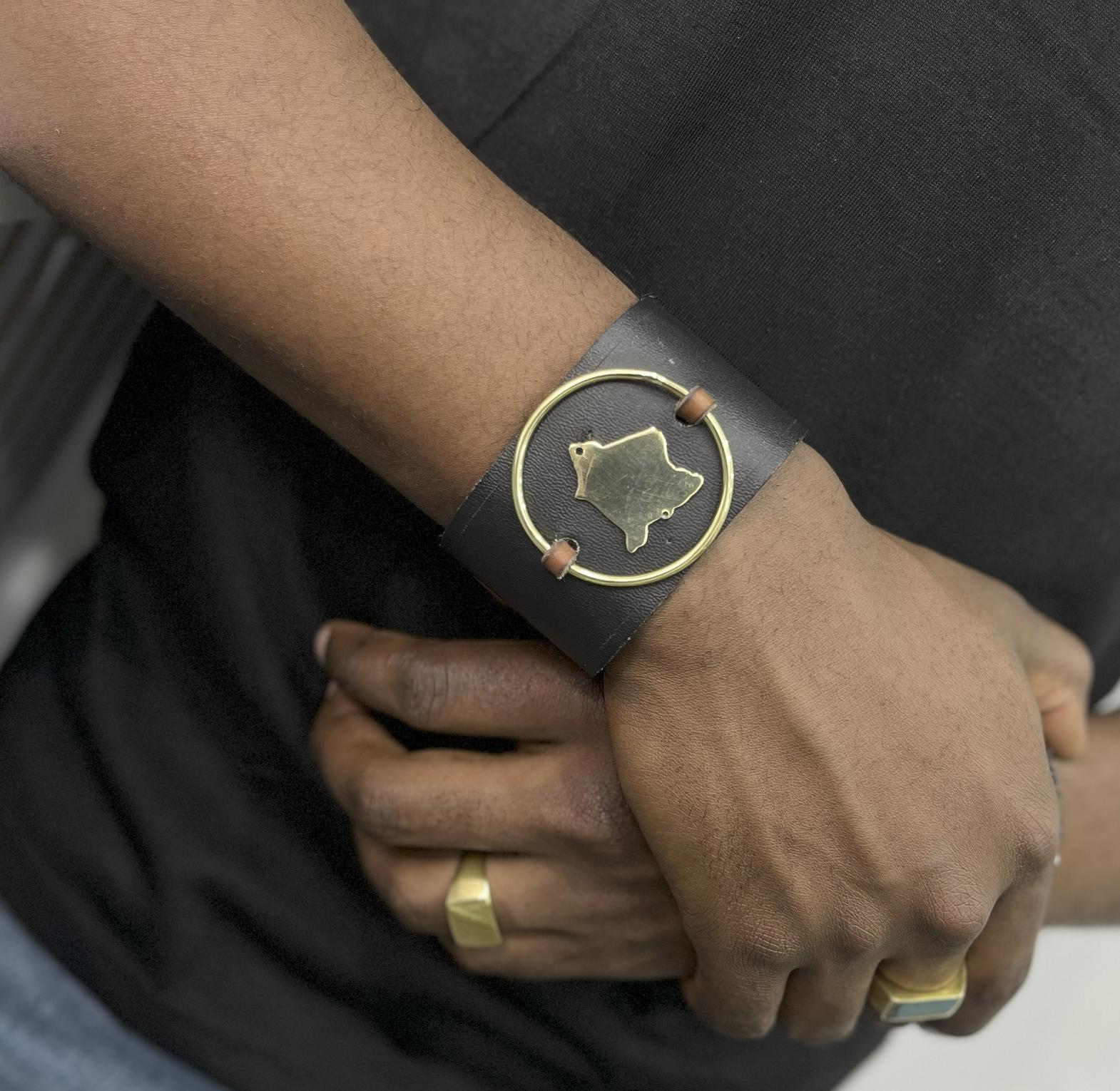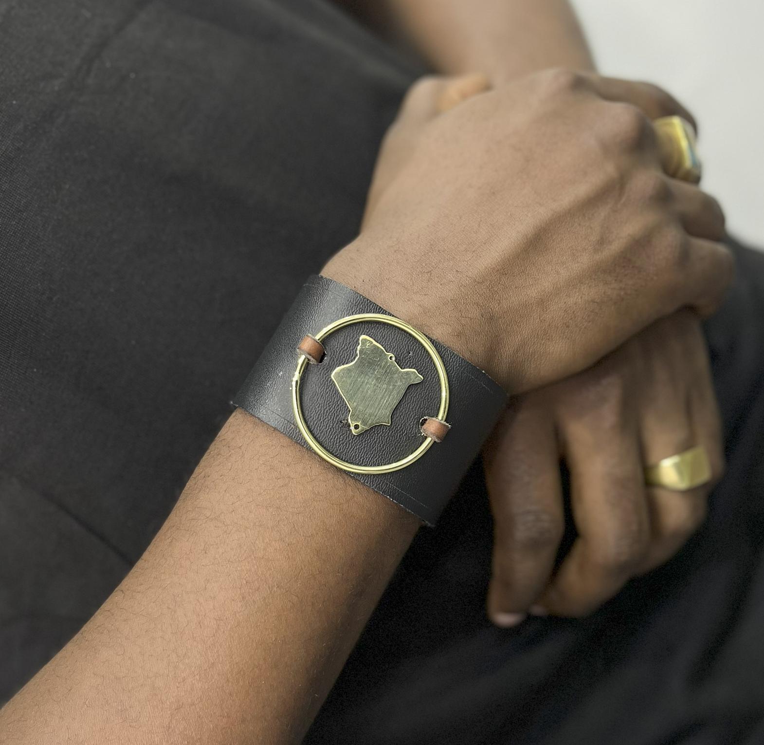 The Taye Bracelet is crafted from premium leather with bold brass accents, combining durability with style.