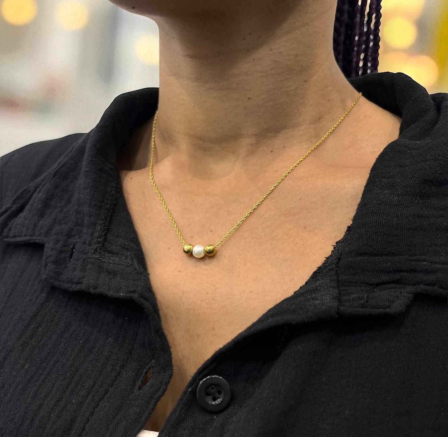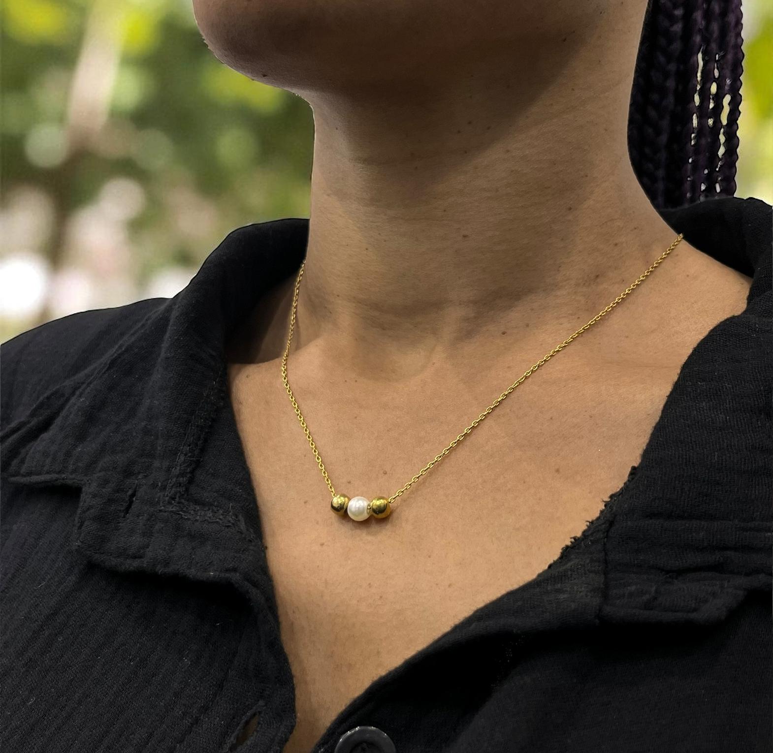 A brass short necklace inspired by He Has Been Seen (Yoruba).
