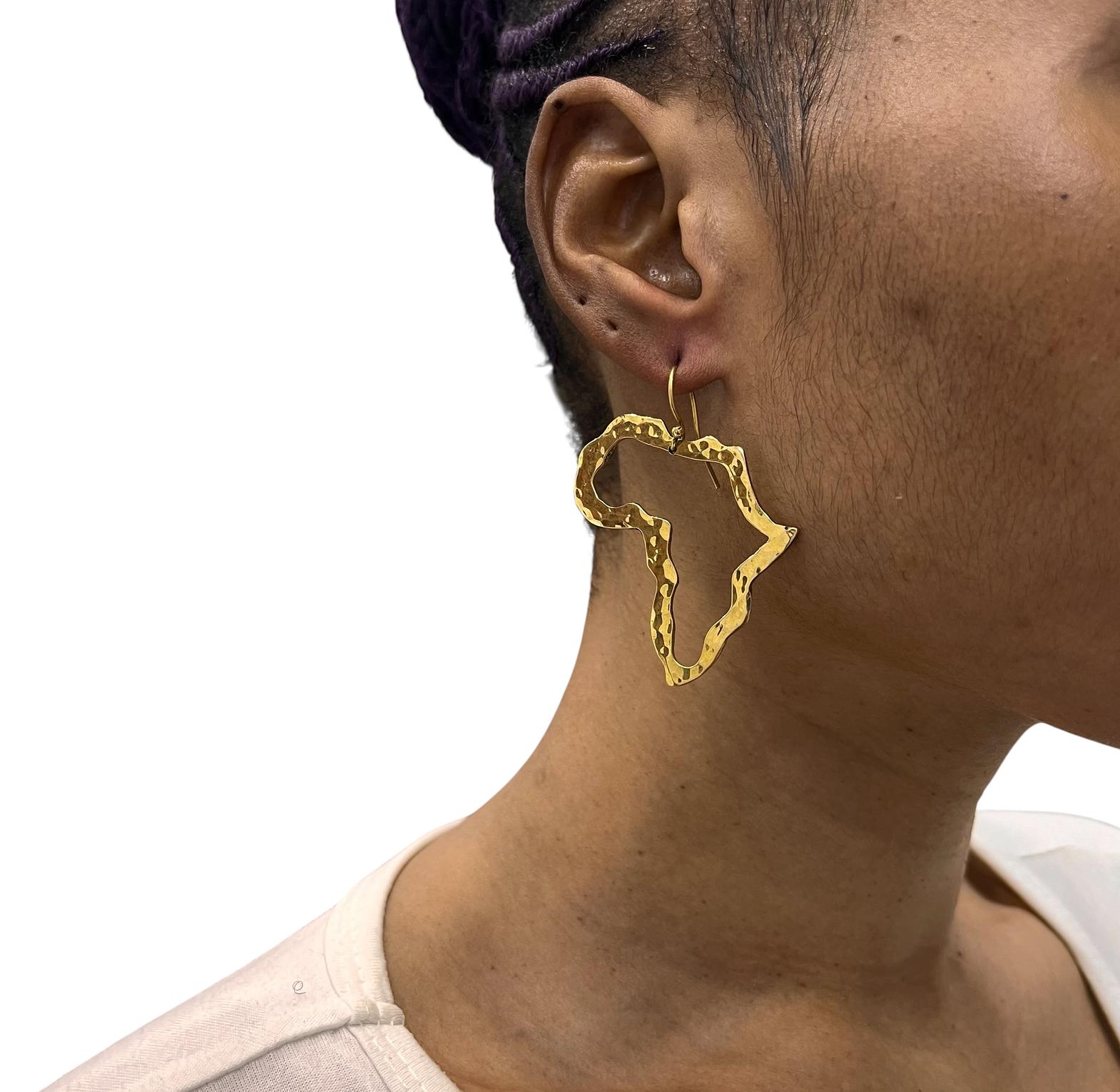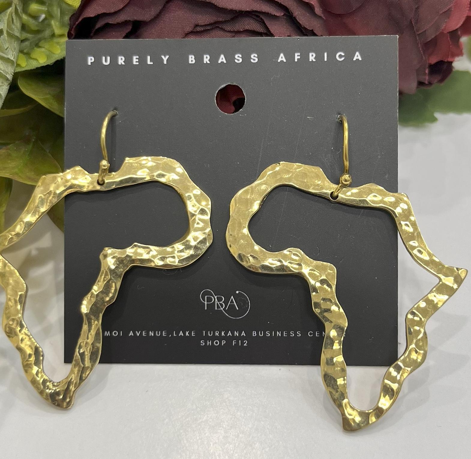 'Tiwonge' is a stunning pair of earrings made from polished golden brass, embodying a intricately detailed aesthetic