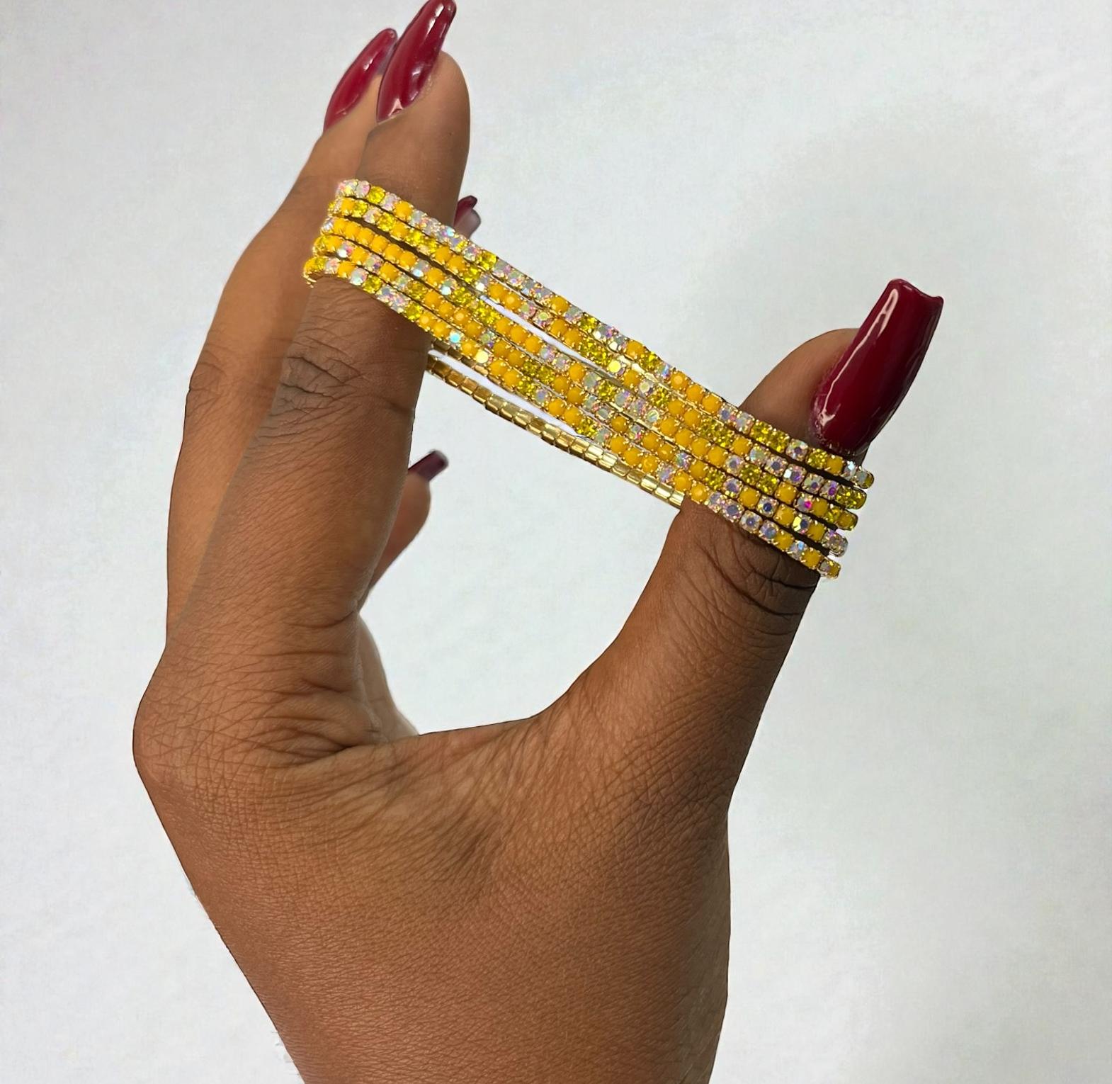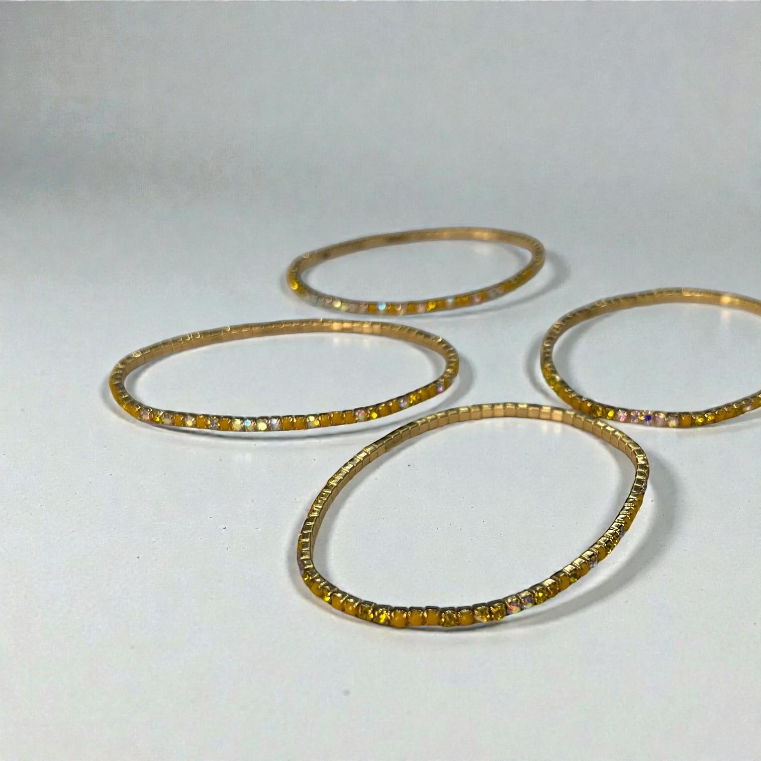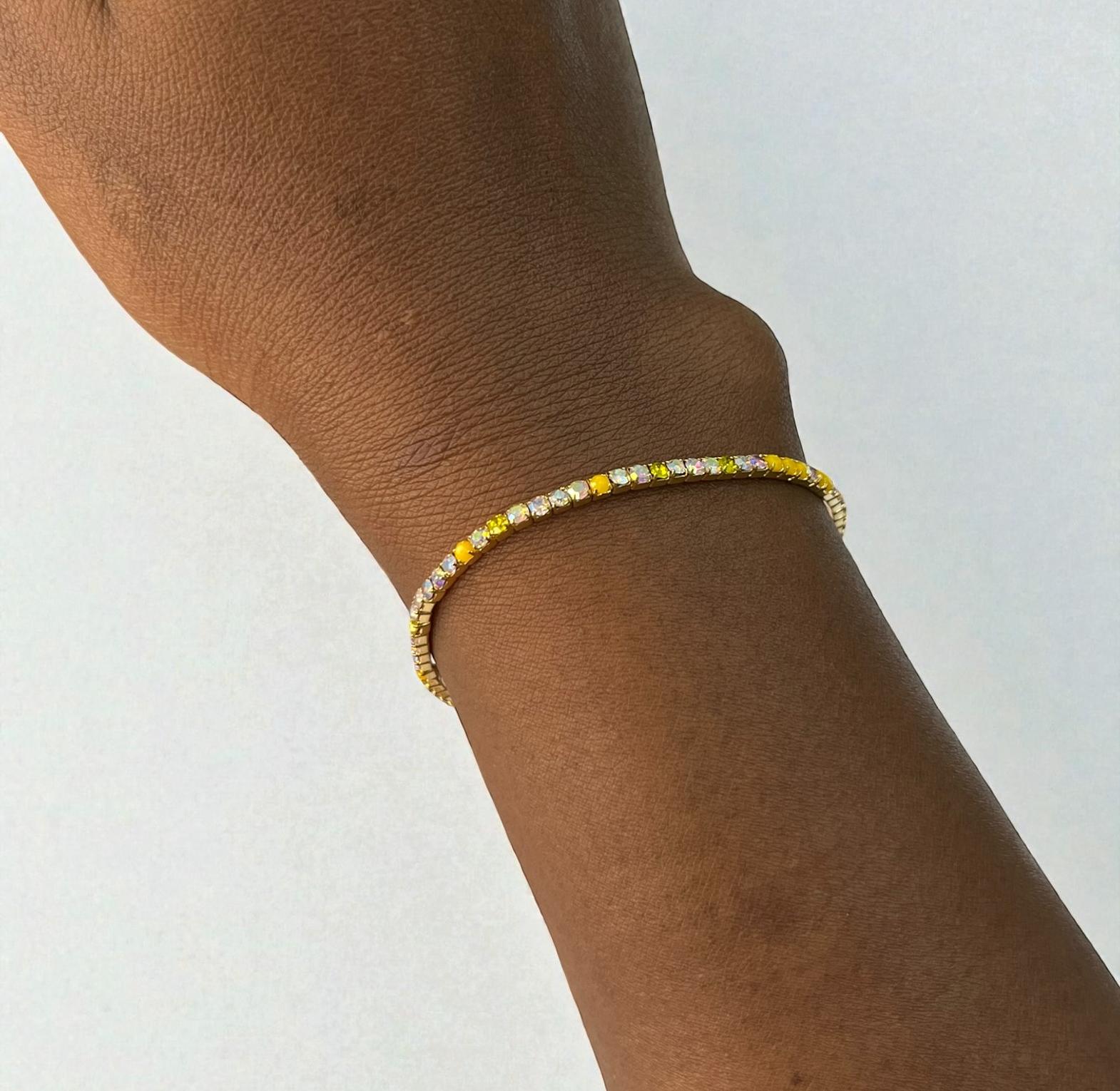 A tennis is a style of jewelry furaturing a contiious,symmetric line of gemstone-traditionally diamonds-connected by a thin flexible metal chain.